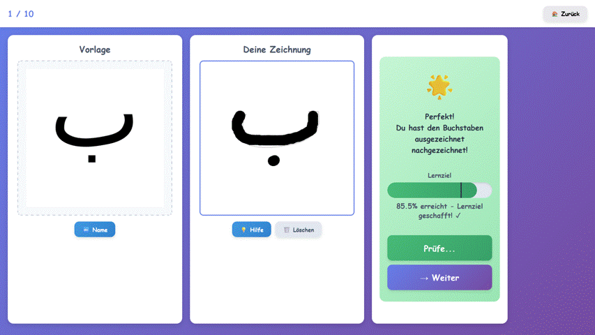 Meine Motivation diese Web-App mit der KI-Claude umzusetzen, ergab sich aus meinem Interesse, ARABISCHE Buchstaben oder Zeichen zu lernen. Diese Umsetzung kann in der Web-App „arabLETTRI“ genutzt werden.